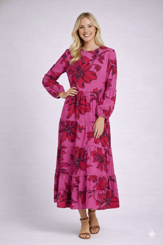 Modest Floral Tiered Dress with Pockets for Every Occasion - Plus
