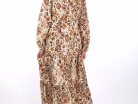 Plus Boho Fall Abstract Floral Long Sleeve Maxi Dress - Brown/Olive