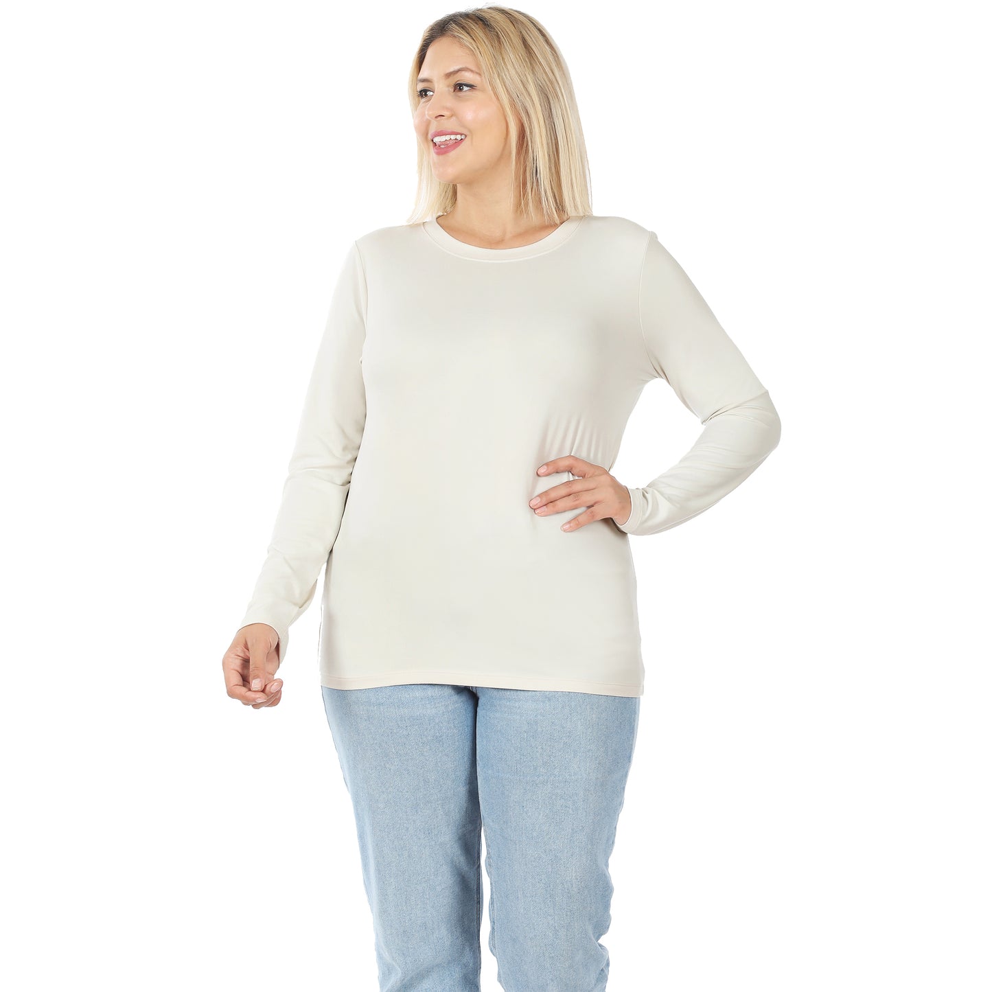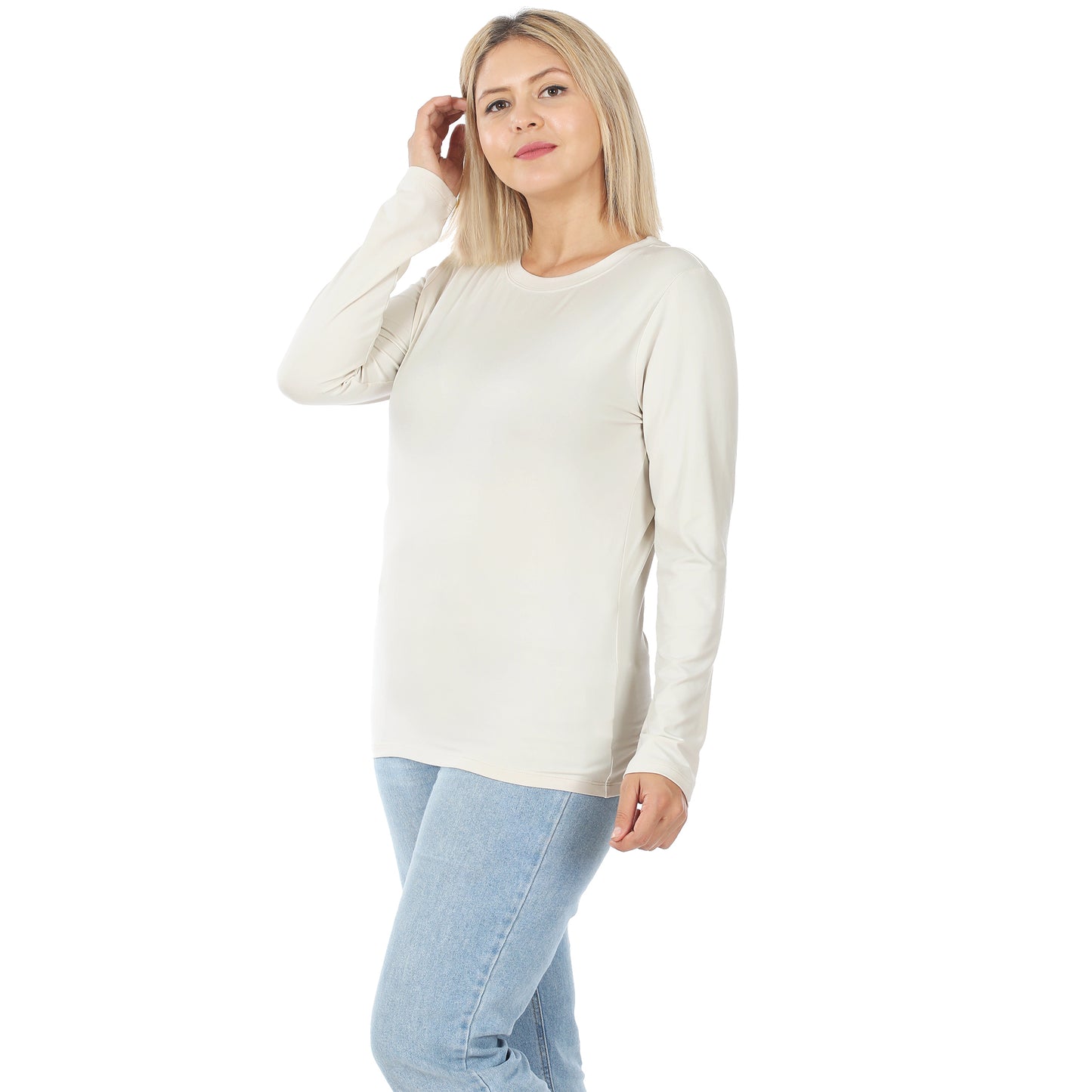 Stay stylish and comfortable with our brushed microfiber long sleeve round neck tee in bone white.