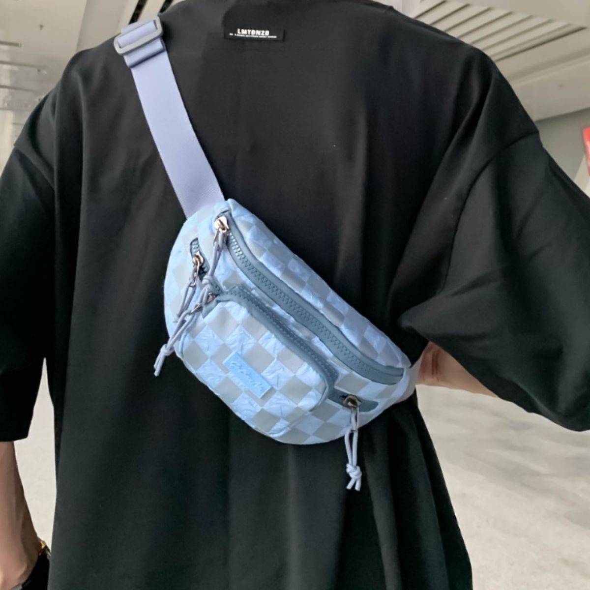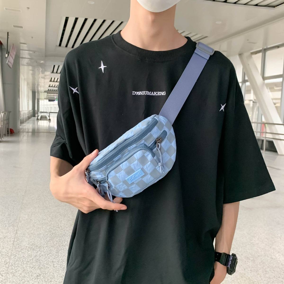 Checkered Adjustable Strap Nylon Crossbody Bag