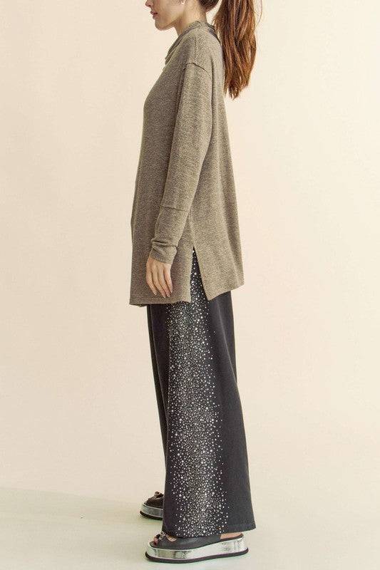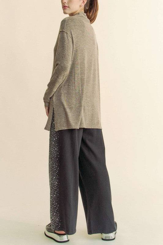 Davi & Dani Slit Mock Neck Long Sleeve Top