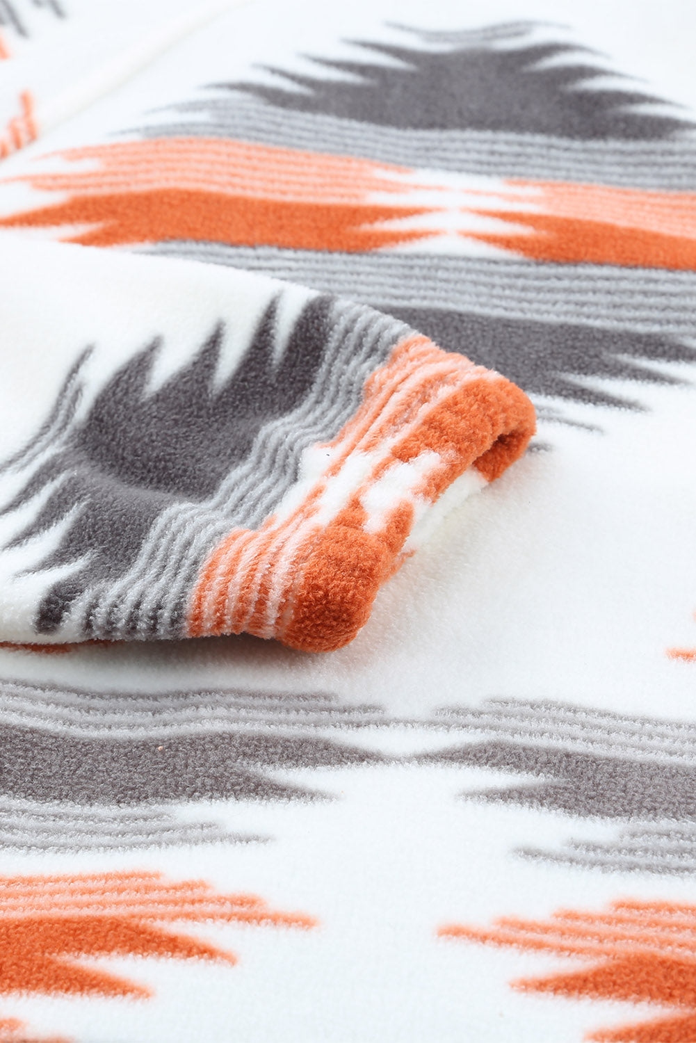 Gray Western Aztec Snap Buttoned Fleece Jacket