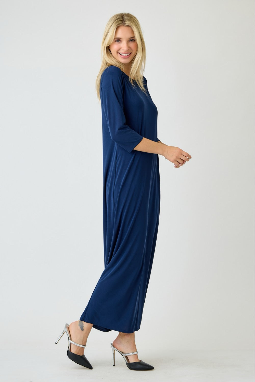 Ladies Long Sleeve Layering Maxi Dress in Navy