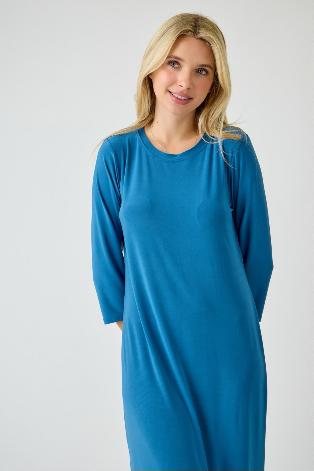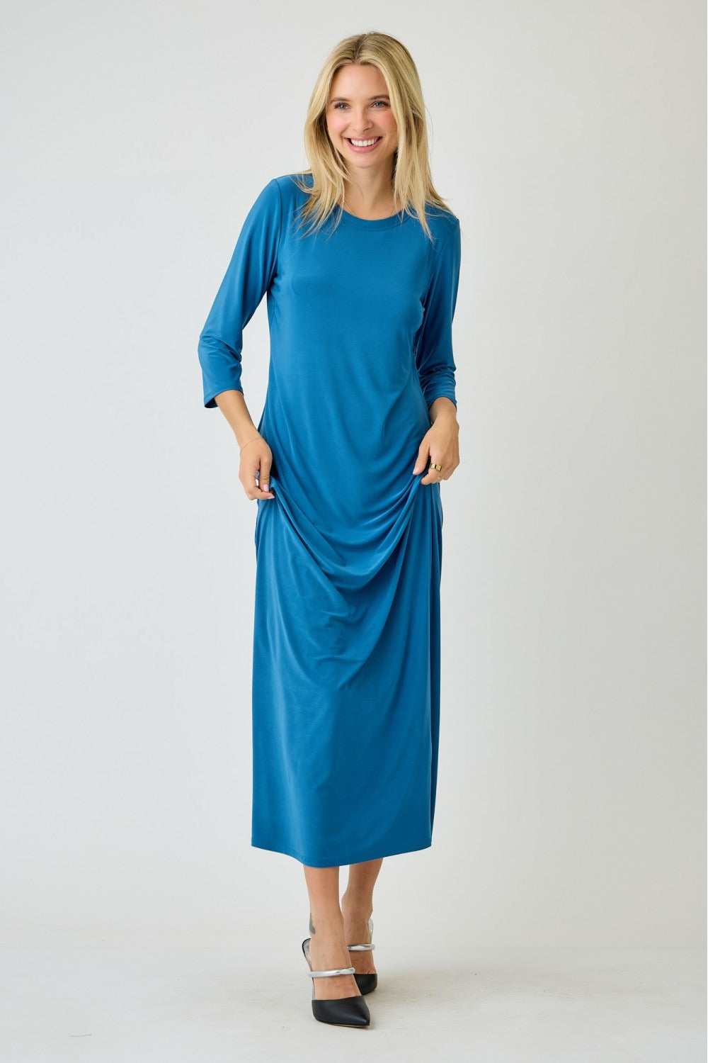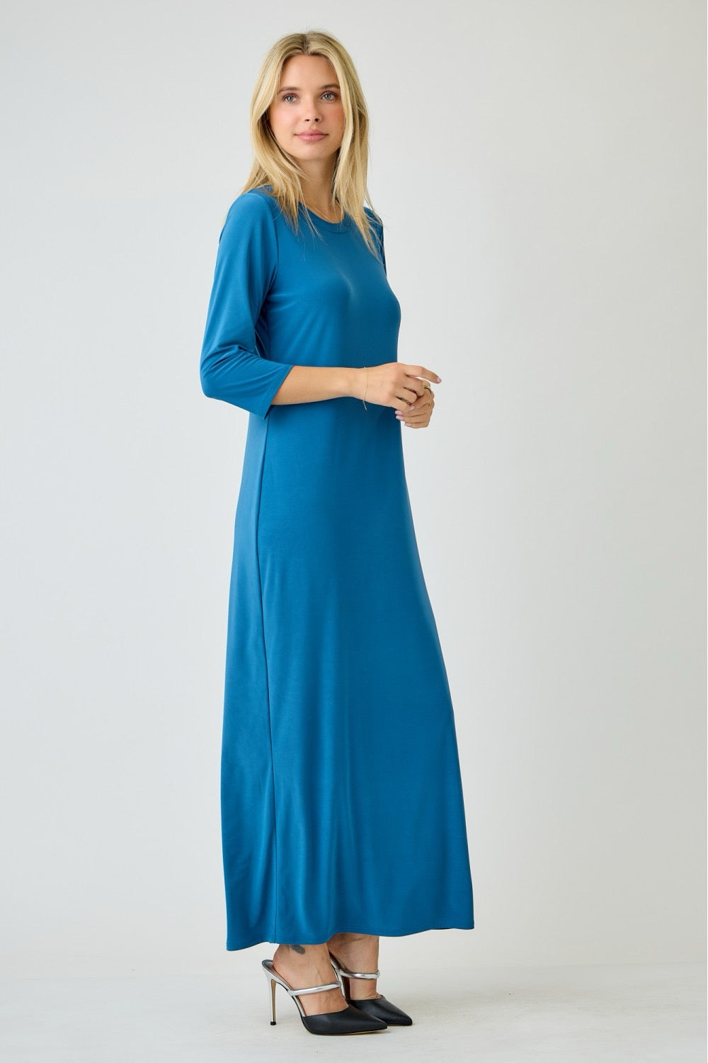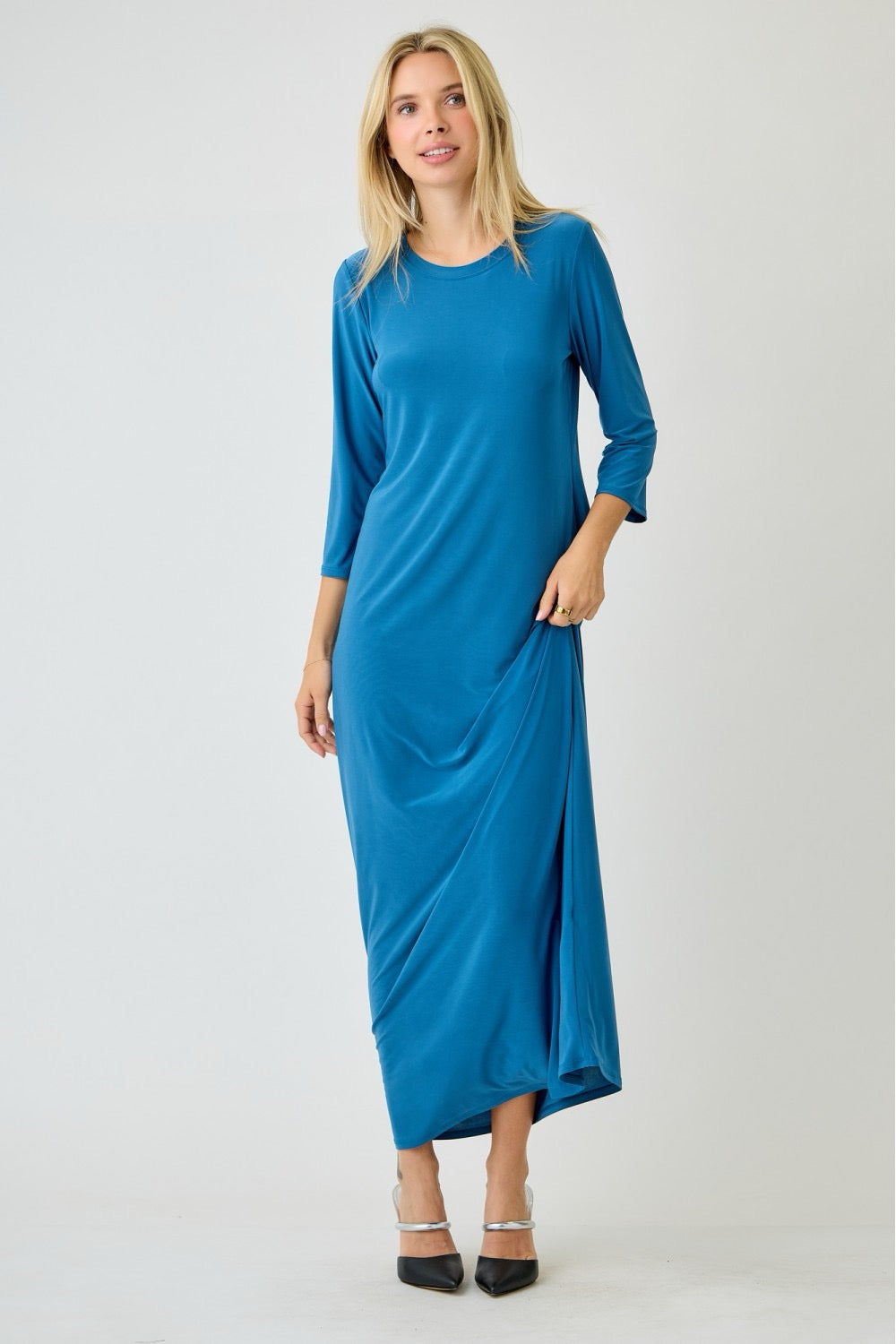 Ladies Long Sleeve PLUS Layering Maxi Dress in Peacock Blue