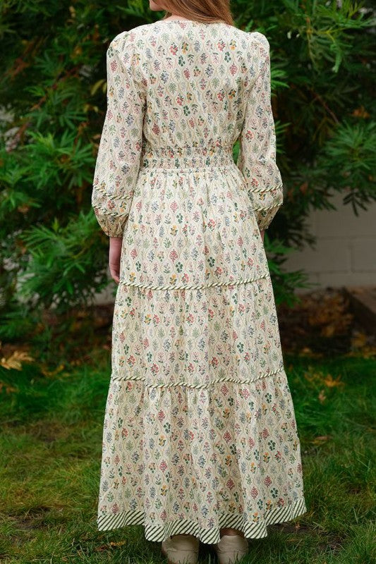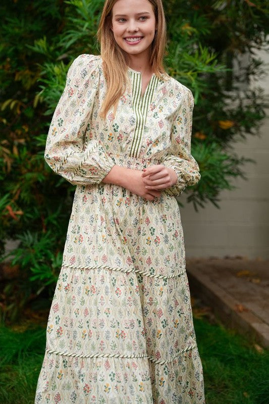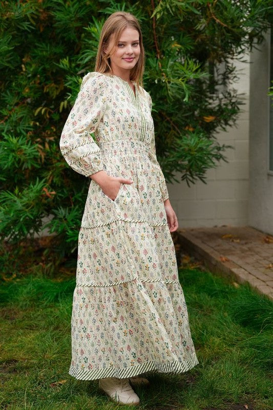 Novelty Print Maxi Dress with Pockets and Detailed Trim