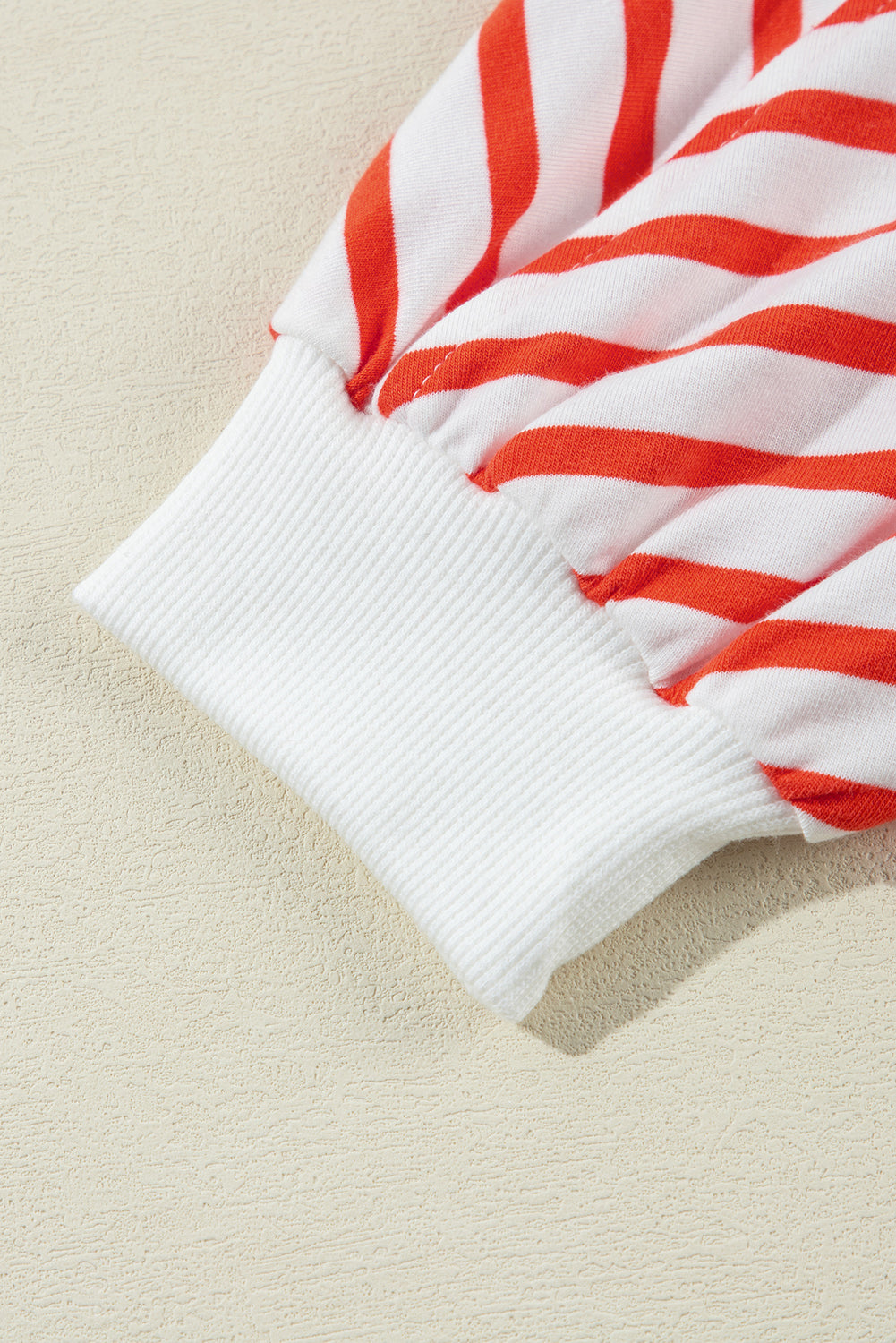 Orange Stripe Drop Shoulder Crew Neck Loose Sweatshirt