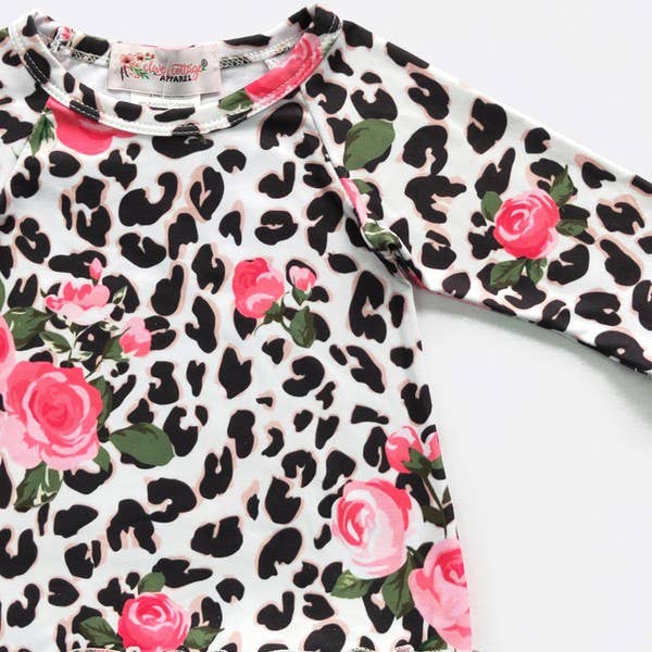 Rose Leopard Baby gown with Headband from Clover Cottage, Rose, Leopard newborn baby gown, newborn baby gown, baby gown, rose leopard gown, rose leopard headband, clover cottage baby gown, Newborn baby gown with matching headband, Newborn gift set with gown and headband
