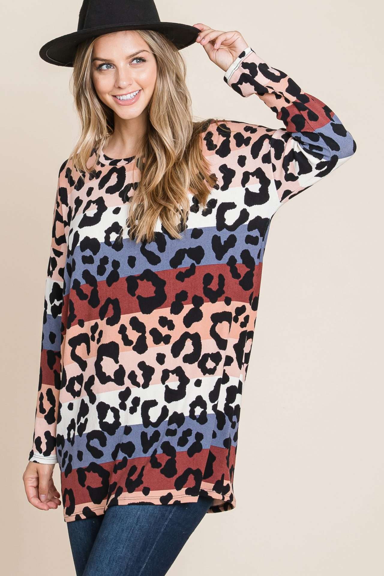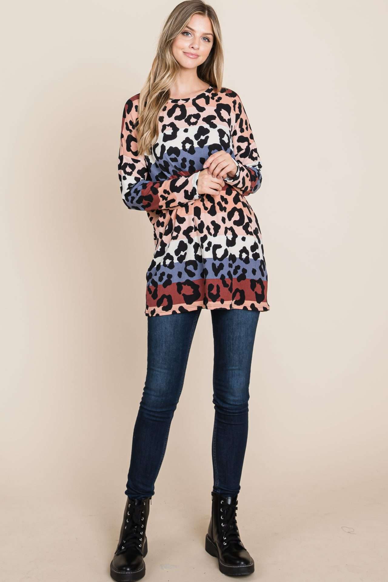 Animal Print Long Sleeve tunic top, animal print top, animal print tunic, tunic top, tunic, animal print, long sleeve tunic, knit top, knit tunic, Bombom, Loose fit tunic, loose fit top, tunic, animal print long sleeve, long sleeve animal print, bombom tunic, fall, fall style, fall top, fall shirt, lighweight sweater, brushed knit top, brushed knit tunic,