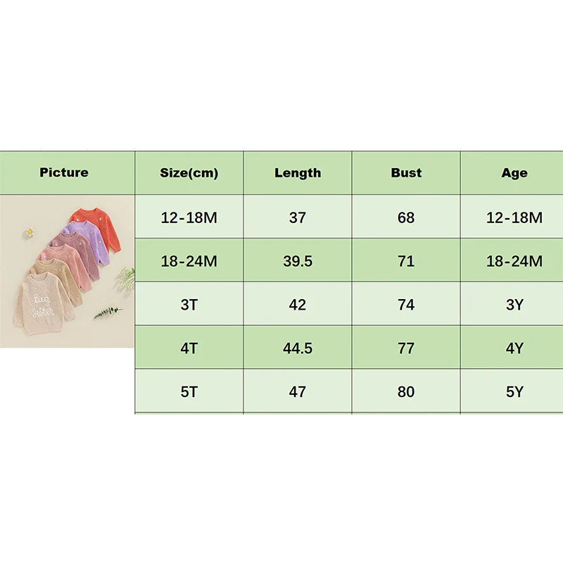 Toddler Kids Girl Big Sister Sweater Cute Long Sleeve Letter Embroidery Knit Pullover Loose Top