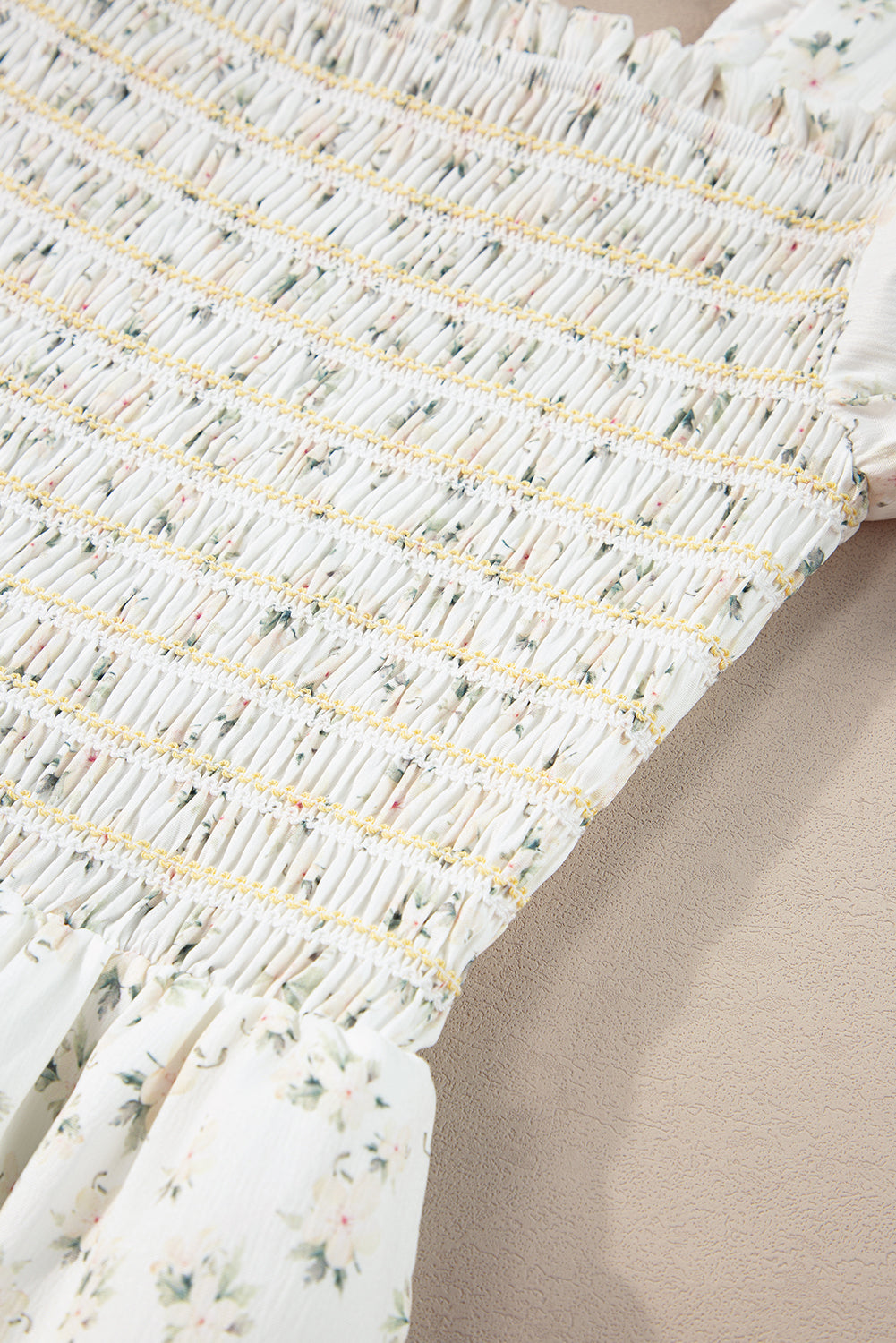 White Frilly Shirred Bodice Tiered Floral Maxi Dress